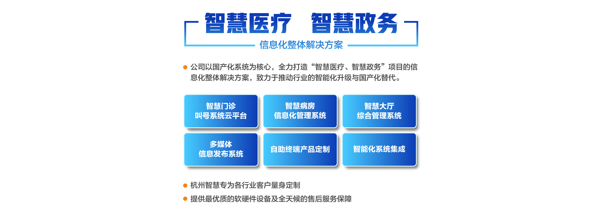 杭州智慧科技有限公司初創(chuàng)于2003年,總部位于重要的電子商務中心中國杭州公司主營業(yè)務有:智慧分診叫號系統(tǒng)、智慧病房醫(yī)護對講系統(tǒng)、智慧大廳綜合管理系統(tǒng)、智慧政務管理系統(tǒng)、智慧多媒體信息發(fā)布系統(tǒng)、導診系統(tǒng)及各自助終端產(chǎn)品定制。專為各行業(yè)客戶量身定制。公司已有20余年行業(yè)經(jīng)驗沉淀積累,擁有優(yōu)秀的產(chǎn)品外觀設計師和各類中高級專業(yè)技術(shù)工程師,確保所研發(fā)的產(chǎn)品具有行業(yè)領先的外觀及可靠的技術(shù)性能。并擁有權(quán)威部門頒發(fā)的各類知識產(chǎn)權(quán)及專利證書,30多項資質(zhì)證書、800多個合作伙伴、2000多個項目成功案例經(jīng)驗。 智慧產(chǎn)品已遍及全國各醫(yī)療、政務、金融、通訊、公安、工商、稅務等行業(yè),形成以“立足杭州、輻射長三角、拓展全國”的戰(zhàn)略發(fā)展格局,產(chǎn)品經(jīng)過歷年不斷創(chuàng)新,形成專業(yè)化、平臺化,致力于成為智慧產(chǎn)品的領軍企業(yè)。 公司建立了完善的技術(shù)培訓及售后服務中心,并設24小時熱線咨詢電話解答用戶反饋的問題。同時應客戶要求定期派技術(shù)人員到 全國各地進行技術(shù)指導輔助用戶正確使用智慧產(chǎn)品并能獨立安裝、調(diào)試、日常維護等工作。提供最優(yōu)質(zhì)的設備及全天候的售后服務保障,智慧永恒不變的服務宗旨——致力于客戶的滿意與成功!...